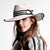 Natural straw panama hat woven by hand with Colombian toquilla straw, trimmed with with black and light grey grosgrain bands, and black lambskin trim. Black lambskin trim around brim edge. Brim...