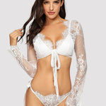 Bottoms Length (cm): 20 cm Bust (cm): 92 cm Chest pad: No Details: Sheer, Scallop Composition: 100% Lace Pattern Type: Plain Shoulder (cm): 32 cm Sleeve Length (cm): 64 cm...