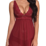 Contrast Lace Babydoll With Thong