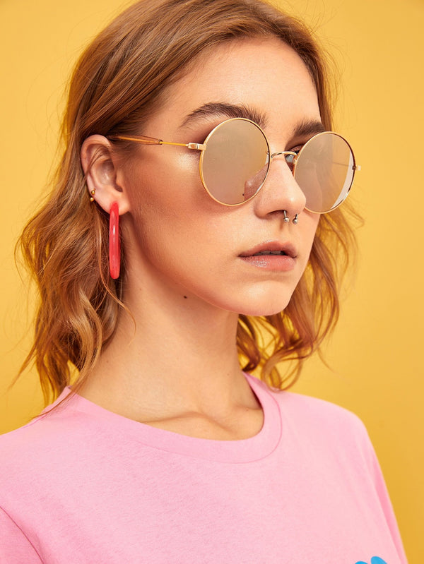 Round Metal Frame Flat Lens Sunglasses