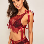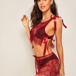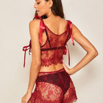 Bow Tie Eyelash Lace Top & Shorts Without Lingerie
