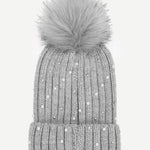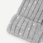 Faux Pearl & Pom-Pom Decorated Beanie Hat