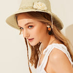 Flower Detail Lace-up Floppy Hat