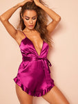 Bust (cm): S: 88 cm, M: 92 cm, L: 96 cm Chest pad: No Details: Belted, Ruffle Length (cm): S: 77 cm, M: 78 cm, L: 79 cm Composition: 95%...