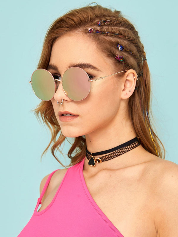 Bridge (cm): 2 cm Lens Height (cm): 6 cm Lens Width (cm): 6 cm Style: Boho Temple Length (cm): 14 cm Type: Round Color: Pink