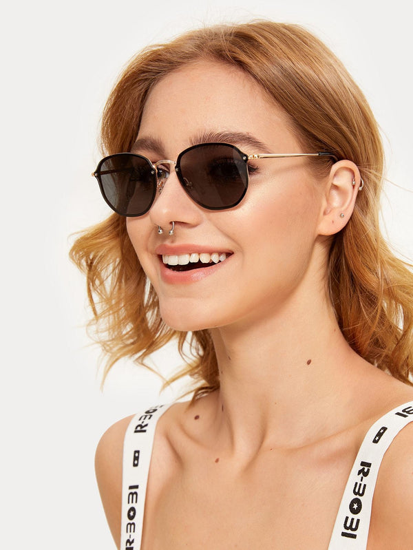 Screw Decor Flat Lens Sunglasses