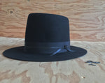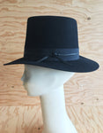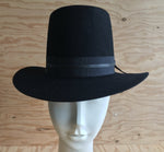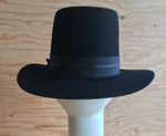Tone on tone black rabbit fur felt with a black grosgrain band and black lambskin trim. Brim size: 2 1/2” Crown height: 5 1/2” Custom made orders for XS, XL and XXL sizes....